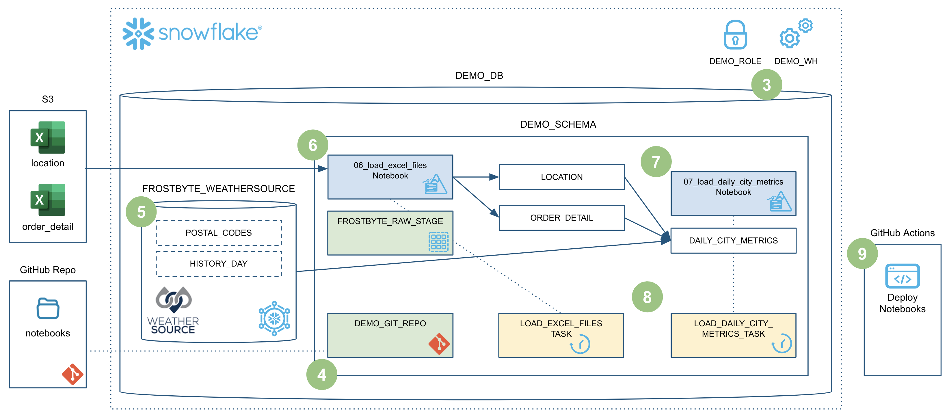 In step 3 we deployed development versions of our two data engineering notebooks, which are owned by the DEMO_ROLE
