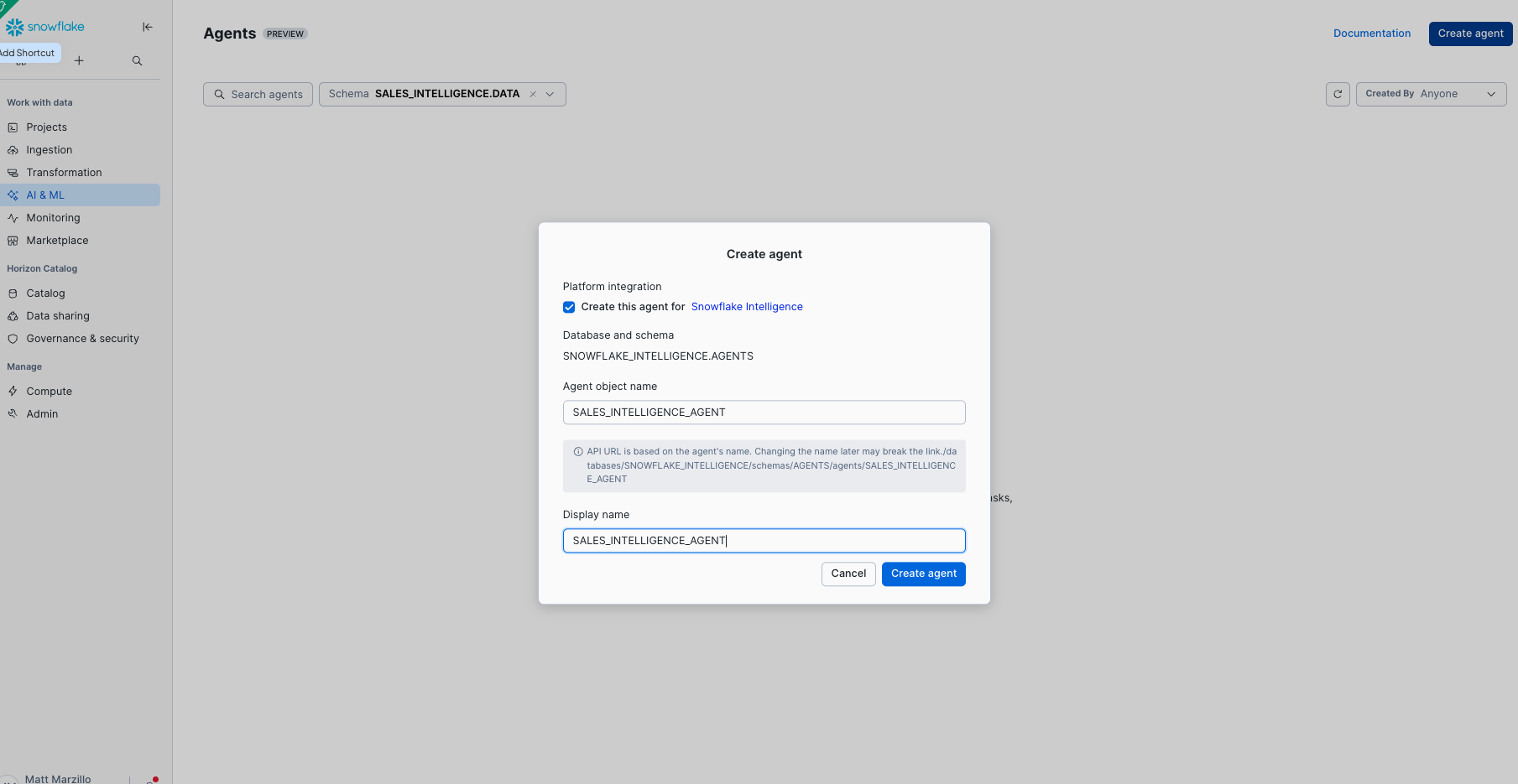 Setting up Cortex Agent