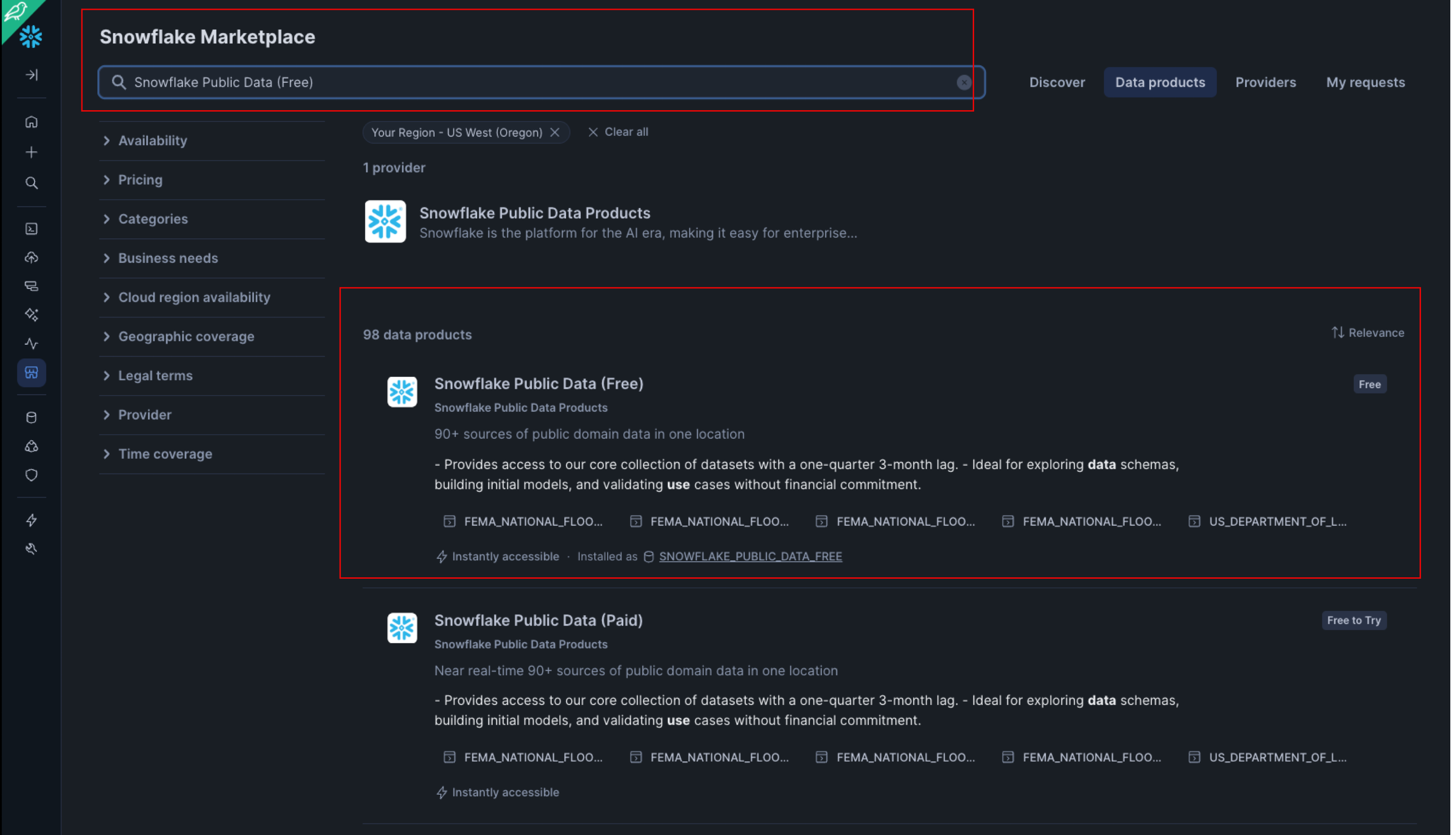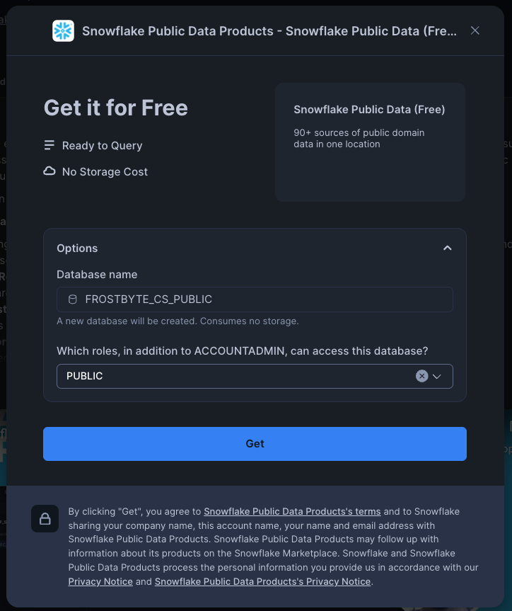 The Snowflake Marketplace provides mutiple listings for data you may use for analytical purposes. We will be leveraging the open data aggregated by Snowflake Public Data for this quickstart, which contains a database of holidays to enrich our sales data.